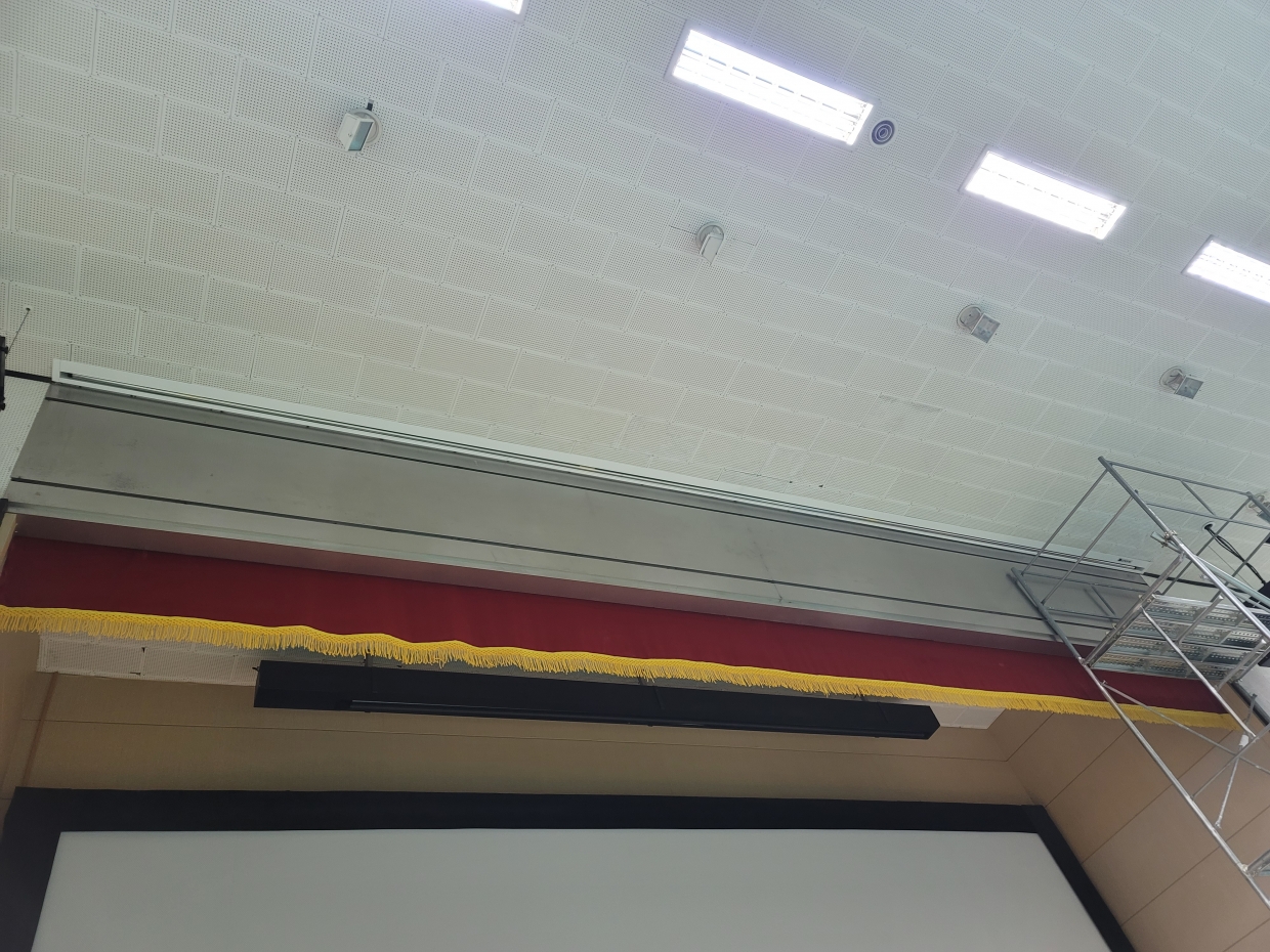 창원에 있는 세아제강 강당 대형 현수막 바텐 설치기 입니다.