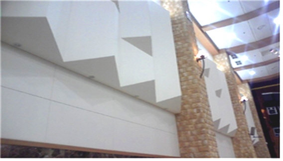아주 중요한 요소입니다. 홀의 뒤부분입니다. 소리를 분산시켜 1차 반사음을 줄여줍니다.